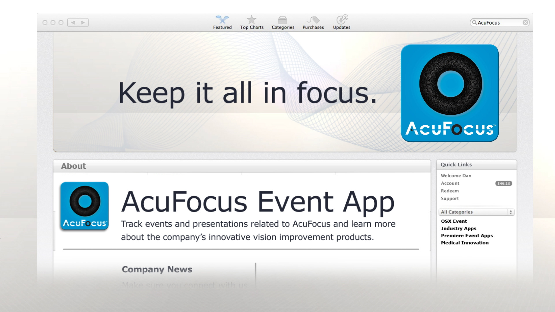 Presentation and trade show loop for optical innovator AcuFocus, and their revolutionary Kamra optical inlay.